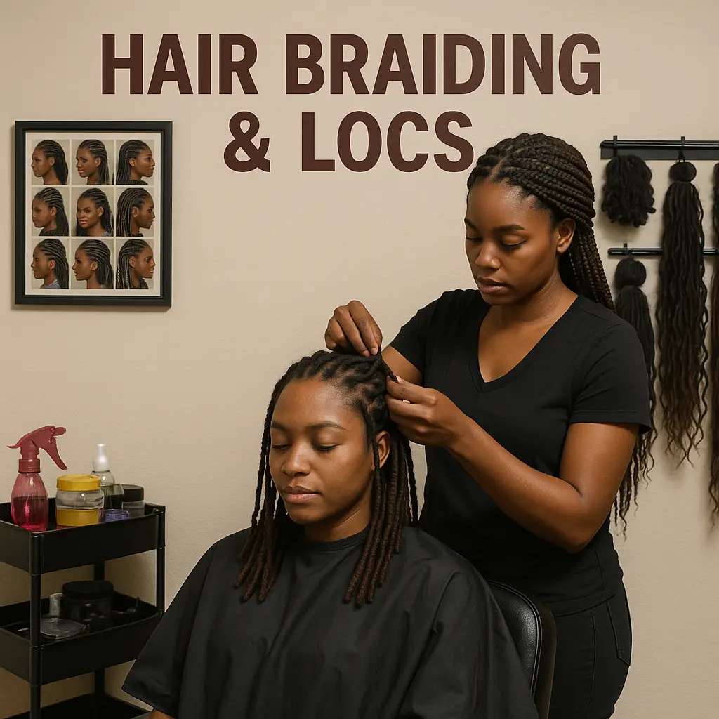 Professional African hair braiding, knotless, box braids, locs, twists & more. Book your next look with trusted specialists